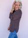 Stay cozy and cool in our espresso colored For The Record Pullover. With a half-button front and classic collar, this pullover balances laid-back style and easy wear. Chest pockets add a dash of practicality, while side slits let you move freely all day long. Soft and comfy, it’s your new go-to for effortlessly fun vibes.