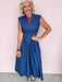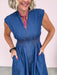 Embrace effortless style with the Fresh Air Midi Dress in classic denim blue. Featuring a flattering V-neckline and a front zipper, this dress combines ease and elegance. The wide smocked elastic waist ensures a comfortable, tailored fit, while cap sleeves and a high middle slit add a touch of modern flair. Perfect for day-to-night wear, it’s a versatile piece that elevates your wardrobe with casual sophistication.