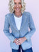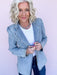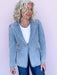 Light wash denim blazer with a tailored fit; fully lined for a polished, comfortable feel