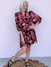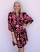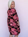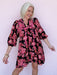 The Ruby Reverie Dress brings a little drama in the best way. This bold floral beauty features a black backdrop with rich ruby and pink tones, accented by contrast pink trim and a tie neckline for a playful finish. The flowy silhouette and soft gathered sleeves make it an easy pick for dinner out, fall events, or anytime you want your outfit to do the talking.
