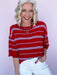 The Standout Stripe Sweater lives up to its name with bold red and blue stripes and an effortlessly cool silhouette. Designed with a relaxed, boxy fit and a soft sweater knit feel, this top brings just the right amount of statement without sacrificing comfort. It’s an easy piece to style with denim when you want your outfit to feel fun, confident, and pulled together.