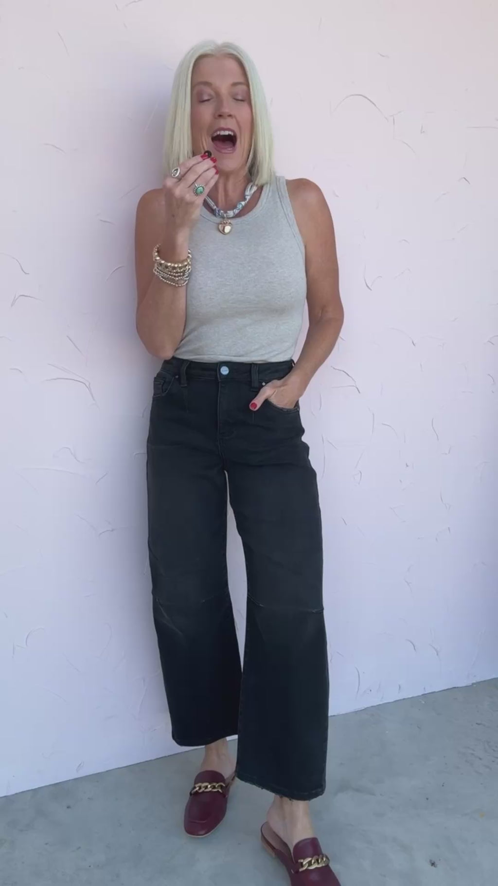 Step up your style game with the Colby Barrel Jeans! These washed black beauties feature a high-rise fit that flatters your waist, wide barrel legs for that perfect mix of comfort and edge, and a slightly cropped length to show off your favorite kicks. Ready for a playful twist on classic denim? These jeans are your new go-to for effortless cool.