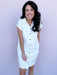 Upgrade your wardrobe with our Forever Favorite Denim Dress! This dress features a washed white denim fabric that adds a touch of edge to the classic shirt dress style. The collared neckline and cuffed sleeves add a polished touch, while the pockets provide convenience. Perfect for any occasion, this dress combines fashion and functionality.