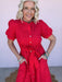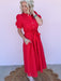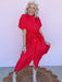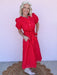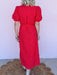 The Sweet Joy Eyelet Dress is made for sunny days and feel-good moments. Designed in a vibrant red eyelet with a flattering midi length, this dress features functional buttons and a waist tie that lets you customize the fit. Fully lined for comfortable wear, it’s an easy choice for everything from casual outings to special occasions.
