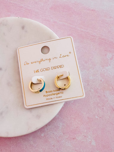 Simple, shiny, and a little bold—these gold hoops add the perfect pop to any outfit. Available in sleek gold or a hint of turquoise enamel for a fu...