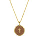 Our 'Tiny Cross Necklace' is the perfect accessory! The brown pendant has an organic feel to it's shape, and the tiny gold cross is perfection! This necklace wears great alone, and it layers with other necklaces, too!