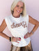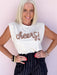 Our Cheers Sparkle Tee brings the fun with its playful sequin and fringe trimmed script that instantly lifts your mood. The soft 100% cotton and relaxed, slightly boxy fit make it an easy grab for casual days. Pair it with denim for a coffee run or dress it up with a metallic skirt for festive outings all season long.