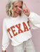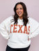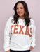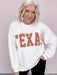 Our Classic Texas Pullover celebrates laid-back Lone Star pride in the coziest way. This cream pullover features rust colored block lettering across the front and an easy, relaxed fit you’ll love to live in. The soft ribbed knit and drop-shoulder design make it perfect for game days, coffee runs, or cozy weekends at home.