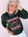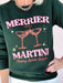 Everything's better with a martini! This comfy and cute forest green-colored sweatshirt features an oversized design and fun pink "Merrier with a Martini" graphic. Perfect for the holiday season, cheers!