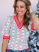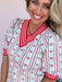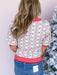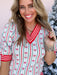Add a playful touch to your winter lineup with our Merry Lines Sweater! The ivory knit is accented with festive red, green, and blue lines and tiny bow detailing for a cheerful twist. Contrasted red-and-white striped hems and a V-neckline pull it all together for a look that’s equal parts cozy and fun.