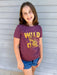 Introducing Wild One kids' tee, in maroon with a striking gold tiger graphic. Show your hometown pride and support local teams with this bold and stylish youth shirt. A must-have for any young fan in Dripping Springs.