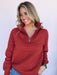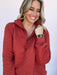 The Fireside Quilted Pullover brings effortless comfort with a touch of texture. Designed in a deep rust hue with a soft quilted pattern and half-zip neckline, it’s the perfect blend of casual and put-together. Toss it on for a chilly morning coffee run, weekend errands, or game day comfort that still looks stylish.