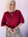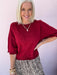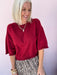 Our Storyline Sweater brings a rich, moody pop of color in a soft, relaxed silhouette that feels effortlessly put together. Designed with drop shoulders and 3/4 length bell sleeves, it offers just the right touch of movement and shape without any fuss. The ribbed neckline and drapey hem make it an easy favorite for workdays, dinner plans, or cozy nights in—just pair it with denim or leggings and let the deep wine tone do all the talking.