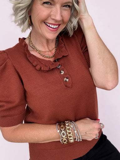FINAL SALE: NO REFUNDS/ EXCHANGES Add a pop of cozy charm to your wardrobe with this plum-colored Fine Line Textured Top. Featuring a soft, te...