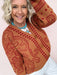 The Red Rock Nights Cardigan brings warm desert tones and western-inspired style together in a statement-worthy layer. Featuring a dot art damask knit design and functional button front, this cardigan feels both elevated and wearable. It’s the perfect finishing piece for rodeo nights, cool evenings, and everyday denim days.