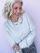 The Love Embroidered Pullover in sand features a soft, neutral base with an intentional embroidered “love” detail for an understated, feel-good touch. Cozy without being bulky, it’s perfect for everyday wear from coffee runs to casual evenings out. An easy layer that adds warmth, comfort, and a little extra heart to your look.