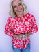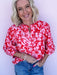 The Petal Play Top brings a fun pop of color to your everyday lineup. The bold pink-and-red floral print is paired with a relaxed silhouette and a ruffled split neckline that keeps things flattering without feeling fussy. Dress it up with trousers or keep it casual with denim when you want your outfit to do the talking.