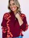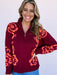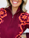 The Ruby Road Sweater is the perfect mix of classic charm and cozy attitude. This burgundy half-zip pullover features bold orange and hot pink floral pattern down the sleeves and sides for a pop of personality. Style it with denim or leggings for a look that feels equal parts effortless and standout.