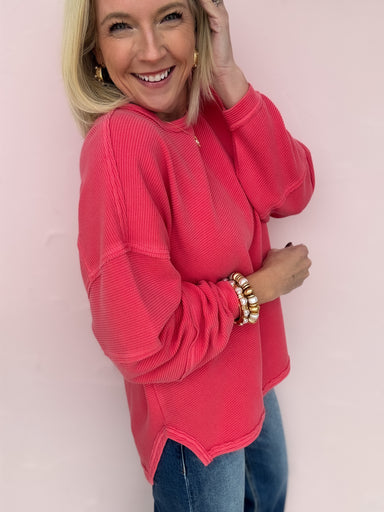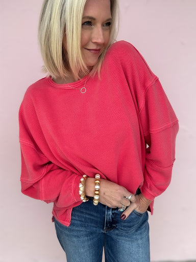 The Right at Home Ribbed Top is all about relaxed comfort with an easy, lived-in feel. The soft ribbed fabric features a roomy, relaxed silhouette ...