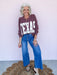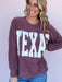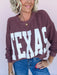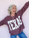 The Texas Roots Ribbed Pullover celebrates laid-back Lone Star pride in the coziest way. This washed burgundy pullover features bold block lettering across the front and an easy, relaxed fit you’ll love to live in. The soft ribbed knit and drop-shoulder design make it perfect for game days, coffee runs, or cozy weekends at home.