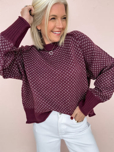 The Mulberry Meadow Sweater brings a sweet, feminine touch with its tiny allover pattern and rich berry hue. The ribbed neckline, cuffs, and hem ad...