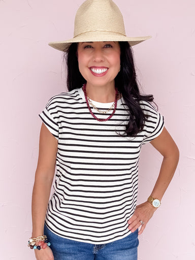 The Sharp Start Stripe Top is that easy throw-on piece that instantly pulls your look together. Designed with a classic black and white stripe, rel...