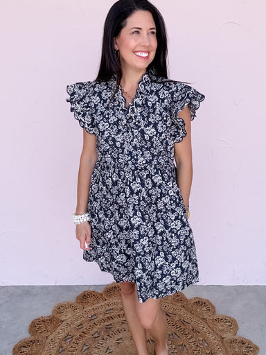 The Camille Petal Dress is that effortlessly pretty piece that feels just a little extra special the moment you slip it on. Featuring a navy floral...