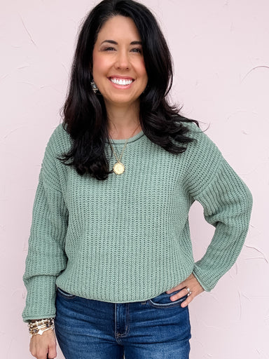 The Sage Studio Sweater brings an easy, calming vibe with its soft waffle knit and pretty muted green tone. It’s lightweight, comfy, and perfect fo...