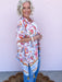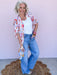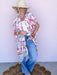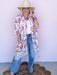 The Golden Meadow Kimono is an effortless layer that feels like a sun-soaked stroll through a Texas wildflower field.  This kimono features a vintage-inspired floral print with soft movement and tassel details that add just the right touch of boho charm.  Easy to throw on over denim, dresses, or your favorite tee, this one size fits all piece was made for slow mornings, road trips, and golden hour moments.