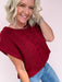 Cozy up with the Napa Grove Sweater, featuring a charming chunky cable knit design in a fresh burgundy hue. Its playful cap sleeves are accented with braided trim, adding a touch of whimsy to your look. Perfect for layering or wearing solo, this top brings warmth and style together effortlessly.