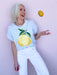 The Squeeze the Day Top is pure sunshine with a little splash of blue skies. Featuring a soft knit feel, relaxed fit, and rolled short sleeves, the cheerful lemon graphic pops against the airy light blue background in the prettiest way. Pair it with white denim for brunch on Main Street or keep it casual with cutoffs for an easy, feel-good kind of day.