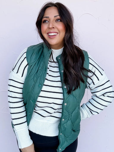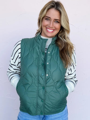 The Wander Well Plaid Vest brings easy charm and warmth to your layered looks. Featuring a classic forest green plaid with a soft quilted feel, it’...