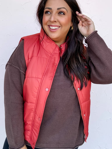 Add a splash of sweetness to your outfit with the Sugar Rush Vest in dusty rose. This sleeveless, quilted, puffer vest features a cozy high neck an...