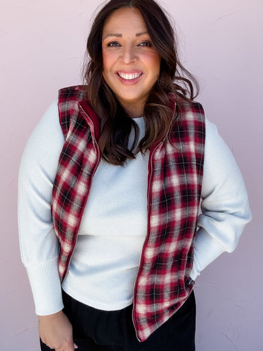 Winter Cabin Vest brings all the cozy, cabin-weekend charm with its reversible design—classic red plaid on one side and rich textured red on the ot...