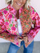 The Painted Garden Jacket brings color and joy to cooler days with its bold floral patchwork design. Made from cotton, this quilted beauty features a mix of pink, coral, and green prints with striped trim for a playful, artisan feel. Lightweight yet cozy, it’s the statement layer you’ll grab for brunch, shopping days, and everything in between.