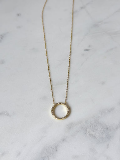 A new favorite, our 'Open Pavé Circle Necklace' is a dainty gold chain necklace with a open circle pendant. This necklace is perfect for wearing a...