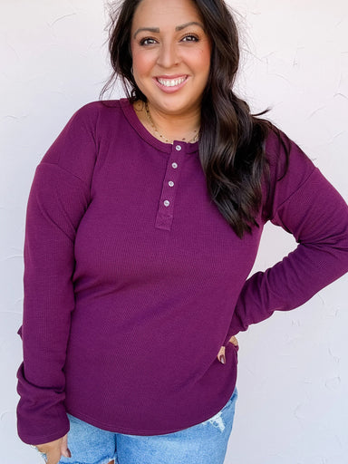 FINAL SALE: NO REFUNDS/ EXCHANGES Add a pop of cozy charm to your wardrobe with this plum-colored Fine Line Textured Top. Featuring a soft, te...