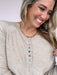 The Color Thread Henley brings subtle joy to your everyday look with its soft neutral tone and playful button detail. Featuring a relaxed fit and raglan-style sleeves, it’s that easy piece you’ll reach for again and again. Pair it with denim, trousers, or a cozy cardi for a look that feels polished yet effortless.