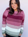 The Cranberry Lane Sweater brings a fresh pop of color to your cool-weather lineup. Featuring shades of cranberry, rose, ivory, and sage in soft, varied stripes, it’s the perfect blend of cozy and cheerful. The lightweight knit makes it easy to wear on its own now and layer later — perfect for weekend plans or a casual day out.