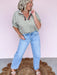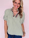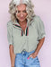 The Miles Away Top features a chic ivory and olive striped pattern with dolman sleeves finished by loose elastic cuffs for comfortable movement. Its fold-over collar is accented with a playful multi-color trim, adding a fresh, on-trend touch to your look. Perfect for those who want style and ease in one flattering piece.
