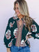 Bring a pop of color and texture to your wardrobe with the Savannah Textured Top. Featuring a charming forest green base adorned with a chocolate and orange floral and border print, this seersucker fabric gem adds playful dimension. The split neck and 3/4 length sleeves offer a breezy, comfortable fit perfect for any occasion.
