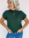 The Steady Ground Knit Top is your go-to for effortless polish. This ribbed, cap sleeve, medium-weight knit features a mock neckline, chest pocket detail, and a soft, stretchy feel that keeps it comfy all day. The rich forest green tone pairs beautifully with denim or trousers — a simple piece that always feels put together.