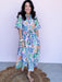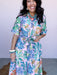 The Blooming Day Dress is the kind of cheerful piece that instantly brightens your wardrobe. This full-length floral dress features a soft pink backdrop with vibrant botanical prints, a classic collar neckline, and hidden button-down detailing for a polished finish. Finished with a waist tie, subtle ruching at the back, and a breezy lined skirt, it’s perfect for brunch dates, showers, or any sunny day plans.