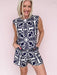 The Lantern Light Set is made for those easy summer evenings that start on the patio and stretch long after sunset. This two-piece set features a sleeveless printed top with delicate buttons down the back and a subtle slit detail, paired with matching tailored shorts in the same bold navy and cream pattern. It’s an effortlessly polished look that’s perfect for dinner outside, summer gatherings, or vacation nights.