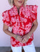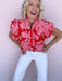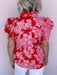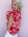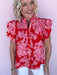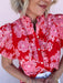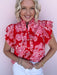 The Marcella Ruffle Top is full of charm with its vibrant color and feminine details. This eye-catching blouse features a bold floral print, delicate eyelet accents, and layered ruffle sleeves that bring plenty of personality. The button-front design and lightweight cotton fabric make it an easy pick for brunch dates, patio dinners, or adding a little romance to your everyday denim.