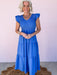 Fit: True to size; smocked bodice with stretch; flutter sleeves; tiered skirt; relaxed, flowy silhouette through the hips and legs; midi length; lined