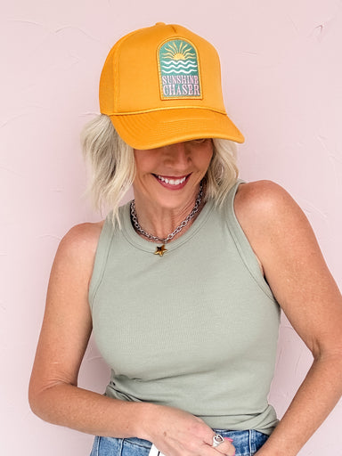 For the girl who lives for sun, salt, and surf—meet the Sunshine Chaser Trucker. Inspired by golden-hour coastlines and endless summer days, this c...