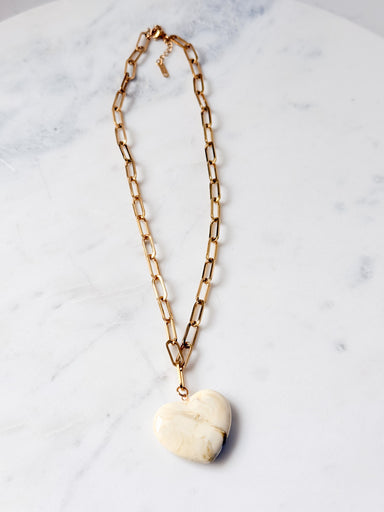 Soft, sentimental, and easy to wear—this marble-style heart pendant adds a subtle statement to any look. The lightweight design hangs from a gold p...
