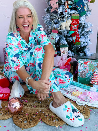 Embroidered with a prosecco bottle and the cutest champagne glass and all the holiday festivities, these cozy slippers are made for the gal who’s a...