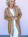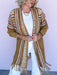 Fit: Relaxed open-front design with fringe detail and longline silhouette.